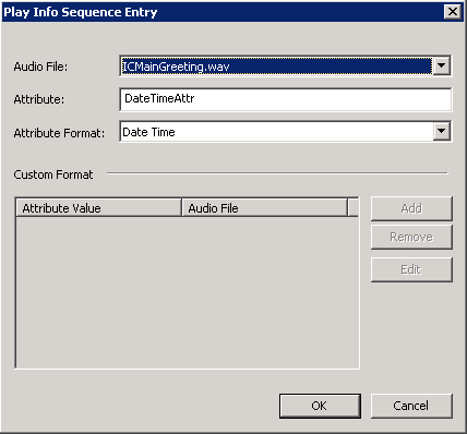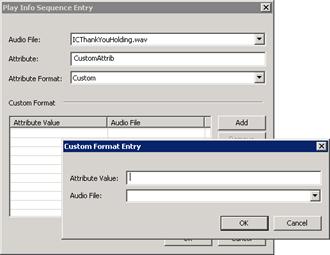 If you set the format to Custom, you are prompted to provide attribute value/audio file pairs associated with that entry as well.