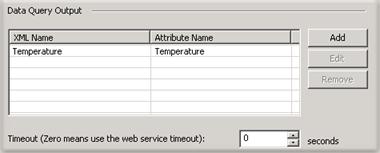 This section configures attributes that will receive the result values from the web service. To complete this section, click Add. You will be prompted to identify the name of the XML service result element that contains the data, and for the name of a call attribute to hold the data returned.