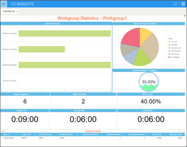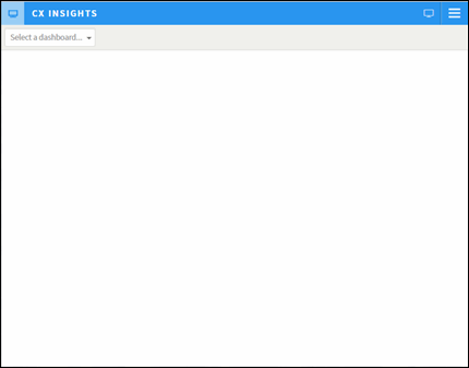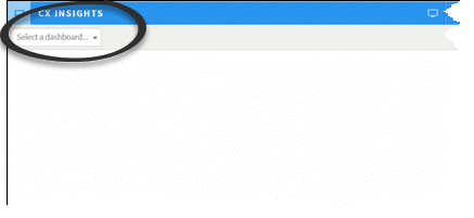 Use the Select a dashboard drop-down list to display the available CX Insights dashboards. If you have been assigned access to a dashboard, it is available in the list. Your CIC administrator assigns access rights to view dashboards.