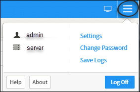 Expand the CX Insights dashboard menu to view the logged on user name and server name, and to access dashboard controls.
