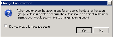 When you make an agent group membership change, you are asked to confirm your change. Click Yes to save the changes, or click No to cancel.