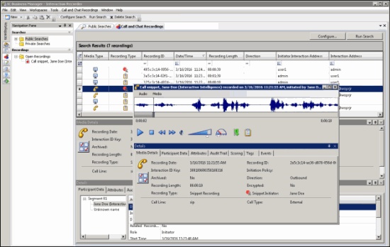 When you Playback a recorded interaction, and the recording is open in the Workspace, it is listed in the Open Recordings folder in the Recordings navigation pane. Use the Open Recordings list to navigate to a recording.
