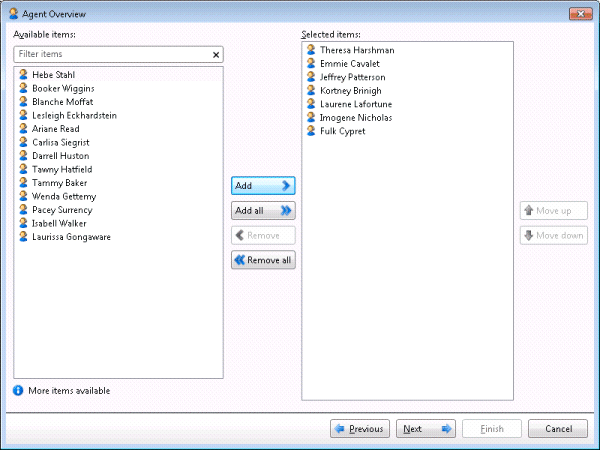 Adds available agents to the list of selected agents.
