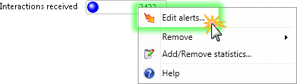 Most views provide a shortcut menu. Right-click the statistic whose alert you wish to edit. Then choose Edit Alerts… from the shortcut menu. In graph views, you must right click the statistic control that appears in the legend for the chart. The Add/Edit Alerts dialog will appear.
