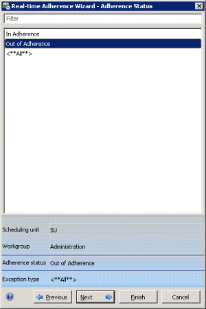 Select either In Adherence (with schedules) or Out of Adherence.