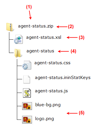 While Interaction Marquee comes with several example XSL File sets, chances are that you'll want to create your own XSL File set in order to customize you statistic display. If you decide to do so, you must adhere to some rules when creating the .zip file that will hold your XSL File set.