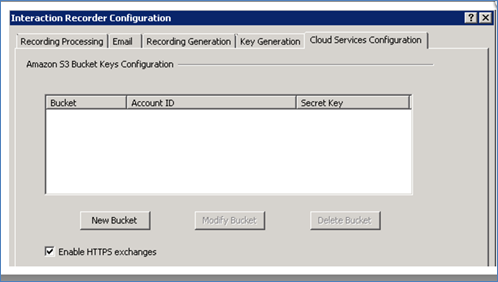 There is a new configuration option within Interaction Recorder to control whether exchanges between the Amazon S3 cloud services and Interaction Recorder Server are HTTP or HTTPS. This option is especially beneficial for CaaS.