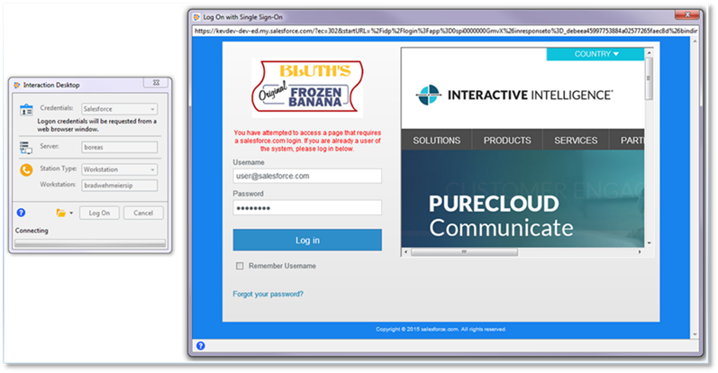 IceLib-based applications, such as Interaction Desktop, now support web-based single sign-on providers such as Salesforce.com. This enables users to be redirected to a web-based authentication form as part of logging onto CIC. Interaction Connect already includes this capability.