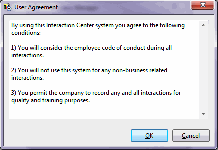 Result: In a secure system, a User Agreement dialog box similar to this one appears.