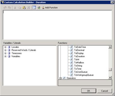 Use the Calculation Editor – Duration dialog box to create calculations that use a duration value.