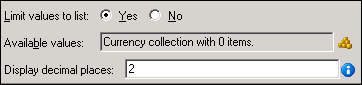 (Optional) To change the default display and precision of two decimal places, enter the desired integer value (from 1 to 28) in the Display decimal places text box.