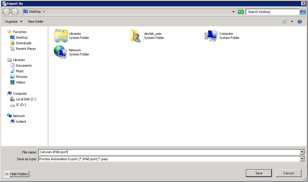 IPA Designer displays the Export As dialog box (see figure).