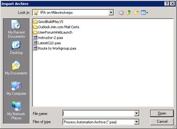 You can import a process that IPA Designer previously exported. The exported process is stored as a file with the .PAA extension.