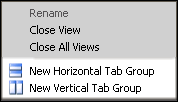 When you select New Vertical Tab Group, the View is split vertically and the Report or Filter is displayed in the new vertical view.