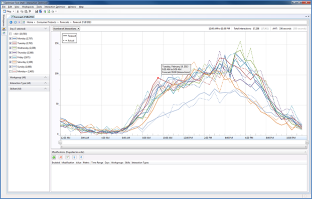 The Optimizer forecasting process in Interaction Center Business Manager now accommodates multiple types of analytic and editing capabilities. The new forecasting features in Interaction Center Business Manager include the following: