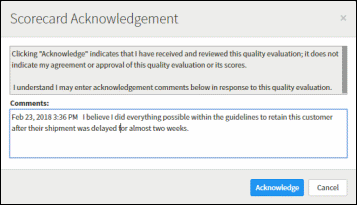 In the Scorecard Acknowledgement dialog box, you can optionally enter any comments relevant to this scorecard.