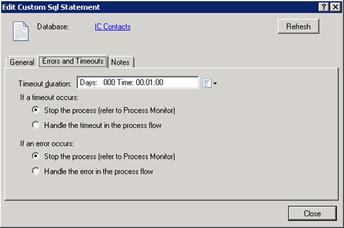 In the Timeout Duration text box, enter the amount of time that the process should try to do the database action before giving up.