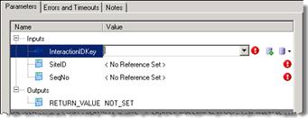 When you pass values to a standard database action such as this one, do not use the ToSql() function to convert the values. IPA Designer does any required conversion automatically. If you use ToSql() with standard database actions, it causes an error.