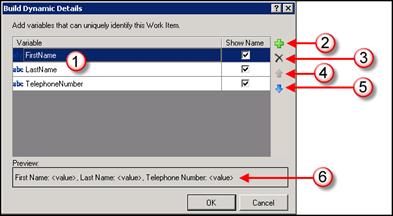 • Add button (2): This lets you select a variable to use as a dynamic details identifier and add it to the Variable list.