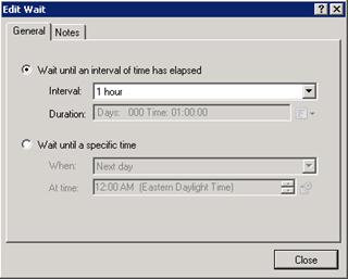 Warning: If you select a time earlier than the current system time, no wait will occur because the wait action's ending time has already passed.
