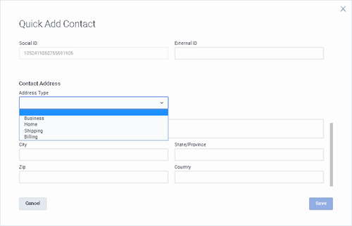 In the Contact Address section, you can supply a Business, Home, Shipping, or Billing address for this contact.