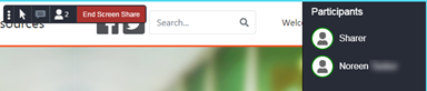 During a Co-browse session, the website visitor sees a webpage toolbar that is similar to the controls available your Co-browse view. The visitor has the same Pointer, Annotation, Participants, and End Co-browse controls.