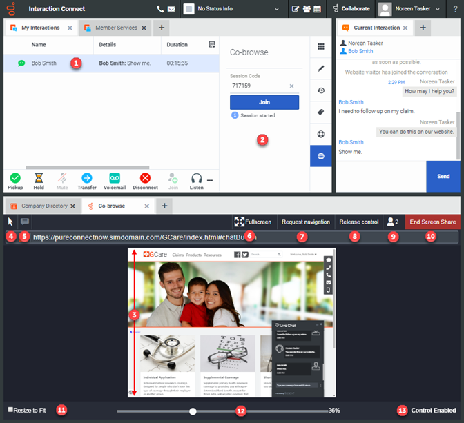 To join a Co-browse session, you must have a selected and connected interaction. |