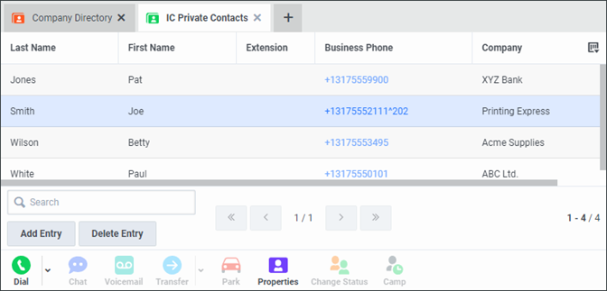 When you have the appropriate rights, as in the IC Private Contacts directory, you can insert and delete directory entries.