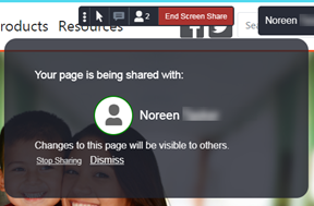 Result: You see the visitor's name and cursor. The visitor can point to where they have a question or a problem. The visitor also sees your name and cursor as you point to areas or controls on the webpage. The visitor can give you control over the webpage so you can scroll, type in fields, click buttons, and make menu selections.