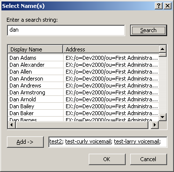 This dialog searches the email server to look up and validate email addresses. To use this dialog: