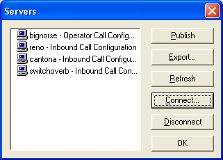 Care must be taken not to publish a configuration unintentionally. The publish command applies to all loaded configurations unless you use the Servers dialog to restrict publishing to specific servers.