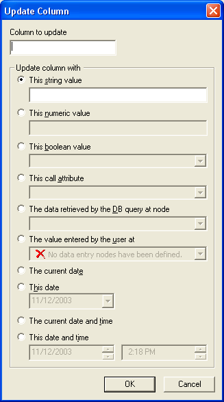 Allows you to assign the value returned by a DB Query to the column updated. The combo box is empty unless the server configuration contains at least one DB Query.