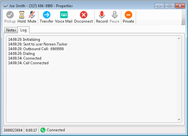 The Log describes changes in the interaction’s state. This information goes into a log file and is used for reporting purposes.