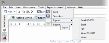 Click the Report Assistant menu, and point to Export, and on the submenu select which format to export the report to.