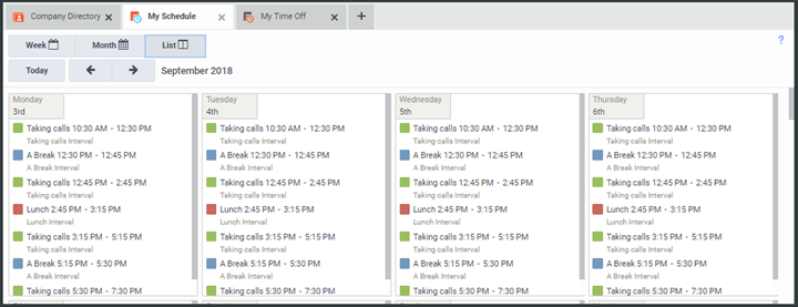 Requirements: You need the Customize Client Security right to display the My Schedule view. For additional requirements, see Agent Optimizer Features and Requirements.