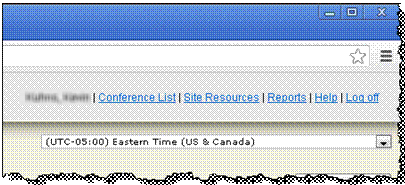 At the upper right corner of most Interaction Conference pages, the Time Zone list box displays the time zone that Interaction Conference is using for the conference. By default, Interaction Conference uses the web server's time zone. To display a different time zone, expand the list and select the time zone you want. Changing the time zone in the list box only changes the time zone display on the page.