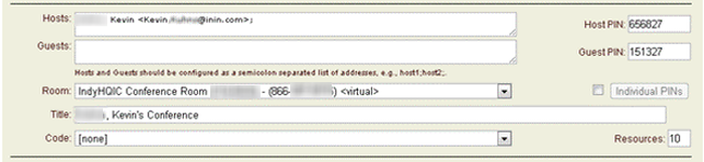 Interaction Conference generates default PIN numbers for hosts and guests. If you want to customize the number, you can assign your own PINs to hosts and guests: