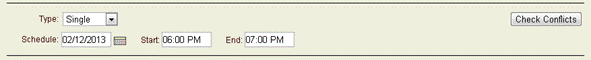 Recurring defines a conference that recurs automatically at a specified interval. The Conference is recreated multiple times based upon recurrence attributes. The Schedule, Start, and End fields are the same as for a non-recurring conference. In addition, set recurrence options, which vary according to the type selected.