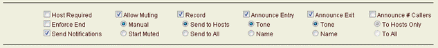 In the Settings section, use check boxes, and radio buttons to set conference attributes: