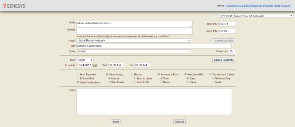 Click Save to save the new conference.