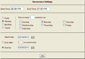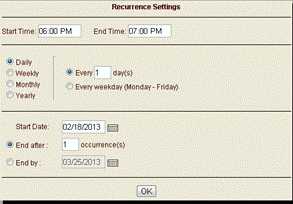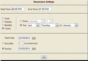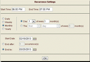 Specify the interval for the conference call. This interval can be Daily, Weekly, Monthly, or Yearly.