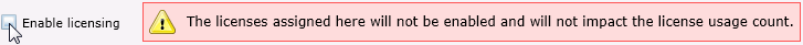 Select the check box to enable licensing. The licensing assigned impacts the licensing usage count.