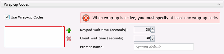 Select Use Wrap-up Codes if wrap-up codes can be used for this workgroup. If enabled, at least one wrap-up code must be specified: