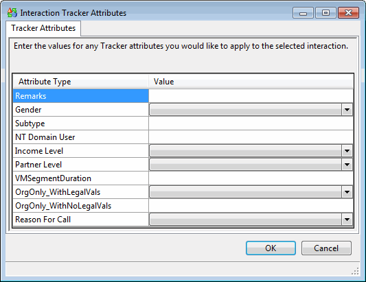Supply values for the displayed Attribute Types for this interaction and click OK.