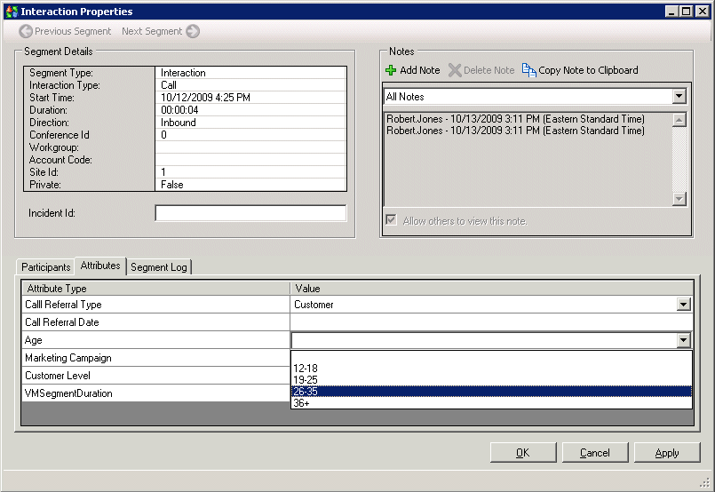 Interaction Tracker enables you to store attributes for contacts, organizations, locations or interactions. An interaction attribute can include such information as notes about a particular situation, duration of the interaction, or other significant details.