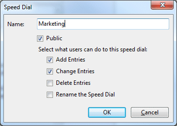 If you decide to make the new Speed Dial view public, select the options you want to grant other users for this Speed Dial view: