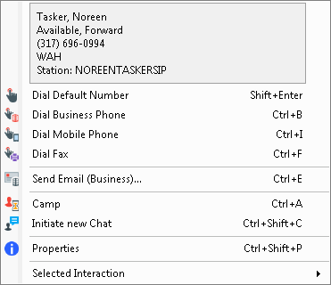 • Right-click a person’s name to display this drop-down menu. Click one of the displayed "Dial" entries.
