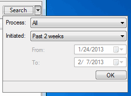 Result: Search results appear in a table in the Search Processes view or Search Processes dialog box.