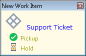 You see a single desktop alert even if you get multiple work items at the same time. The text changes to show how many new work items you have received. Click Open My Work Items to switch to the My Work Items view. Then you can select one work item and click the Pickup button to start processing the work item.