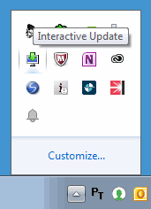 If your CIC administrator uses Interactive Update to apply software updates to client workstations, you may see an Interactive Update icon in your Windows notification area. The Interactive Update application displays different icons, messages, and dialogs, depending on how Interactive Update has been configured to download and apply updates. Typically, the updates are applied automatically, with little or no user interaction needed. For more information, contact your CIC administrator.